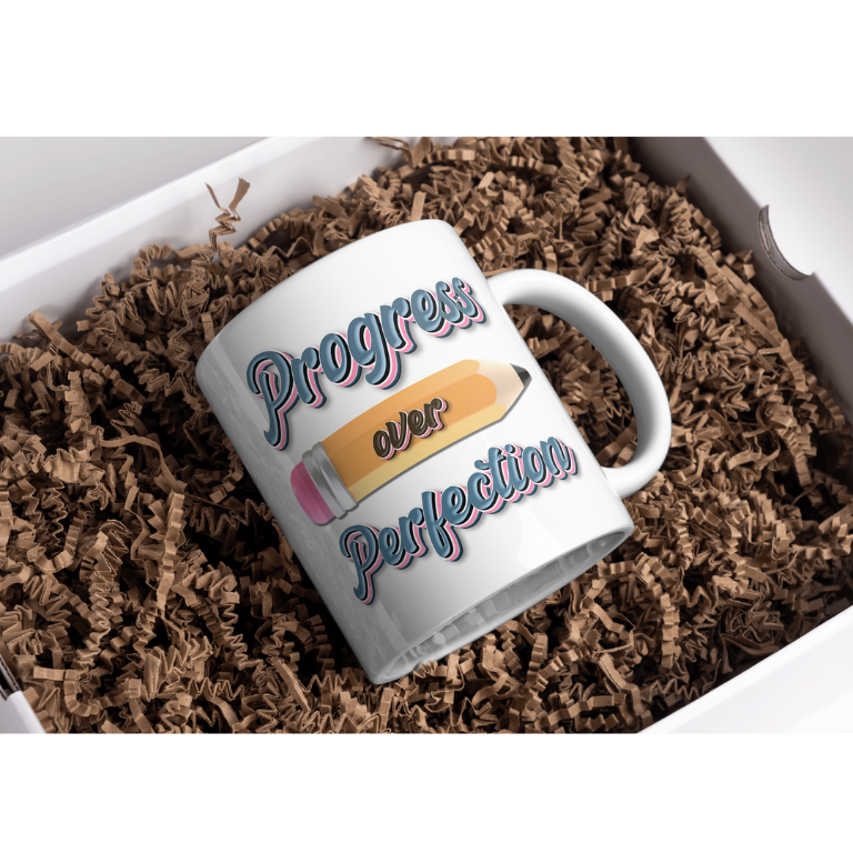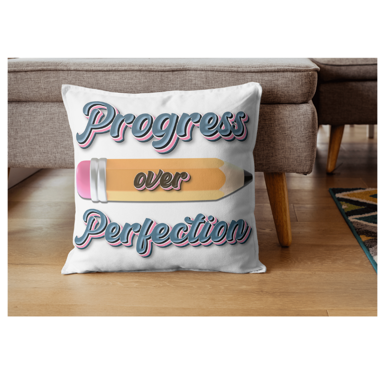 Celebrate growth, resilience, and creativity with this uplifting digital artwork, Progress Over Perfection.
