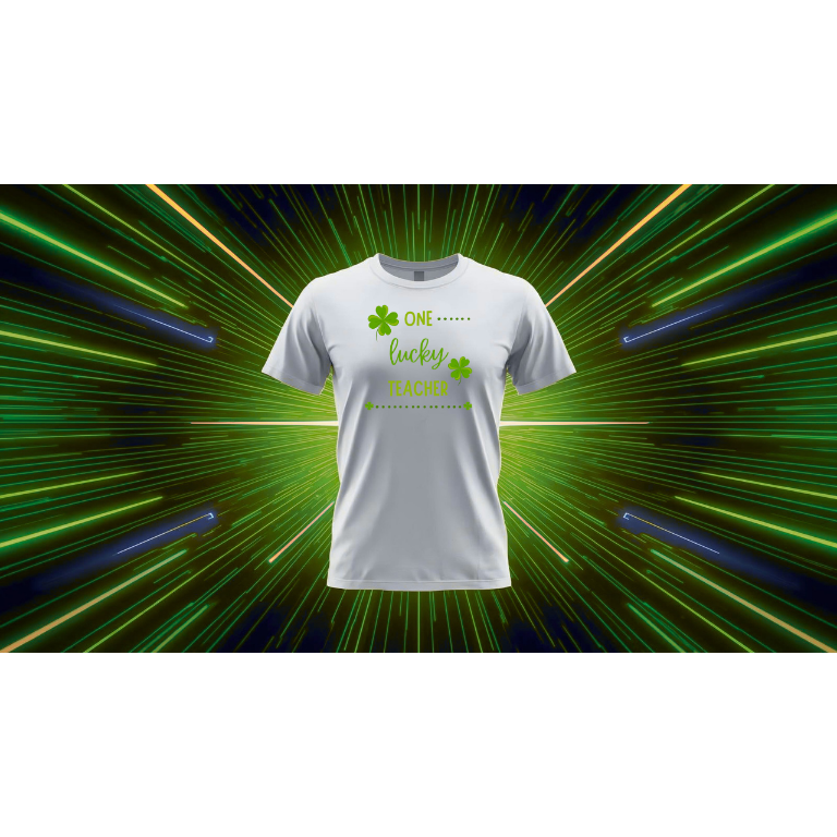 This playful “One Lucky Teacher” design features bright green lettering paired with whimsical shamrocks, making it the perfect way to honor educators during St. Patrick’s Day—or any day of the year.