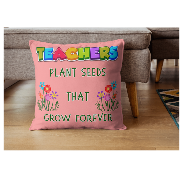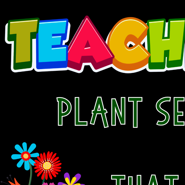 Featuring the phrase “Teachers Plant Seeds That Grow Forever” in bold green lettering against a cheerful backdrop, the graphic is adorned with bright, whimsical flowers that symbolize growth, learning, and the nurturing spirit of teaching.