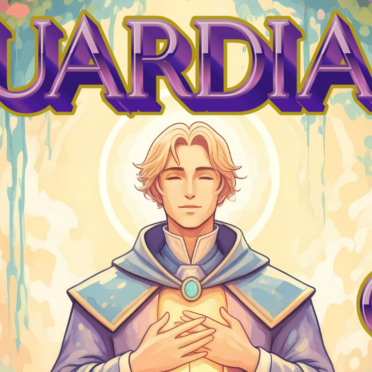 This luminous illustration, titled “Guardian of Gratitude,” evokes the ethereal serenity of Claude Monet’s gardens—lush with wild roses, shimmering lily pads, and gentle pools of reflected light. Cloaked in twilight hues and framed by a halo of golden glow, the Guardian stands serenely at the heart of a dreamlike garden, hands clasped in a gesture of heartfelt appreciation.