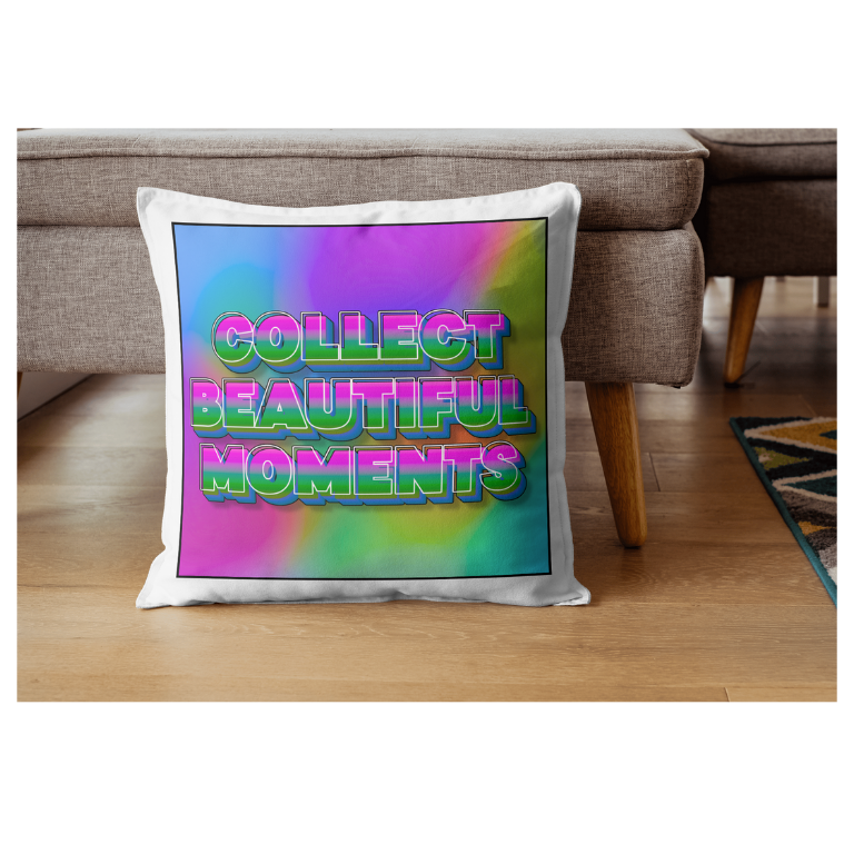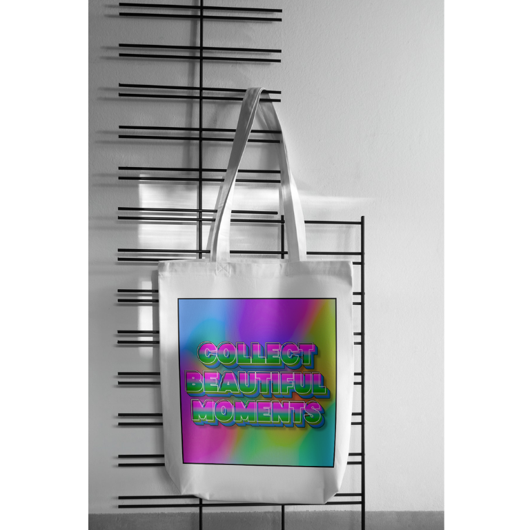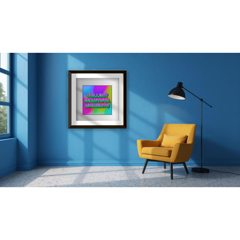 Bask in the glow of life’s fleeting joys with this bold and radiant design titled “Collect Beautiful Moments.” Awash in a dreamy rainbow gradient with bold 3D-style lettering, this artwork bursts with color and positivity, inviting you to savor and celebrate every spark of happiness along your journey. It is a vibrant visual reminder to cherish the now.