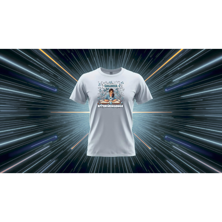 The “Engineer of Effervescence” design capture the spirit of creativity and optimism in the world of engineering. This charming illustration showcases a dedicated engineer at her drafting table, surrounded by a playful cascade of bubbles. It is a delightful tribute to those who bring buoyant energy to every blueprint.