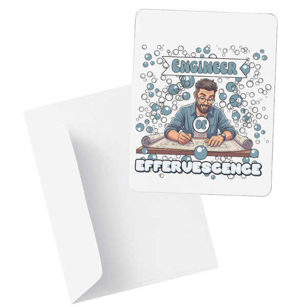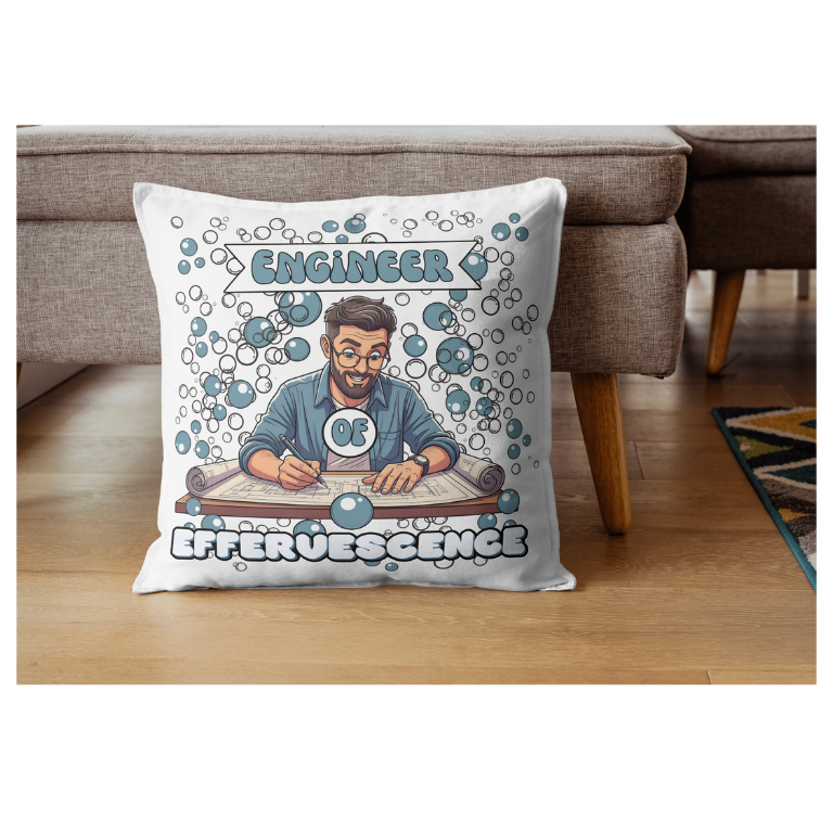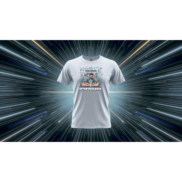 The “Engineer of Effervescence” design capture the spirit of creativity and optimism in the world of engineering. This charming illustration showcases a dedicated engineer at his drafting table, surrounded by a playful cascade of bubbles. It is a delightful tribute to those who bring buoyant energy to every blueprint.