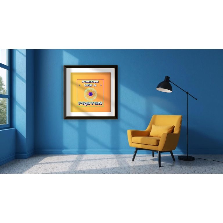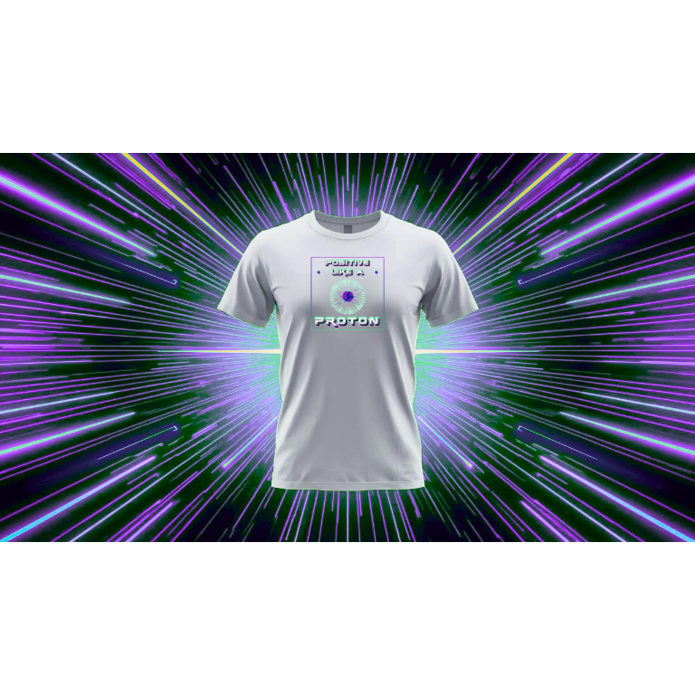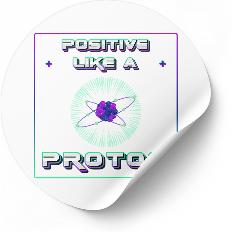 “Positive Like A Proton” fuses sleek modern typography with a vibrant atomic model, sparking joy, curiosity, and a little bit of nerdy pride. It is a perfect reminder that positivity is powerful—at the subatomic level and beyond!