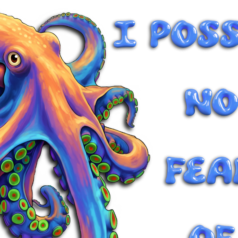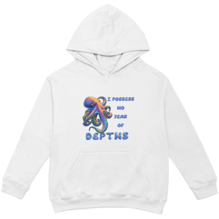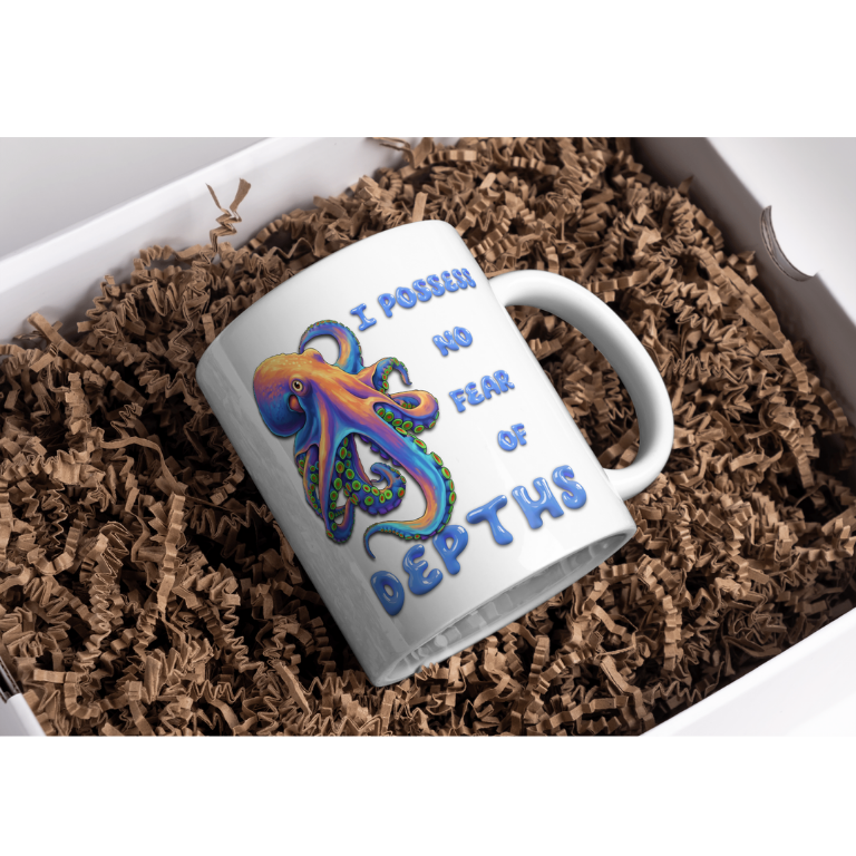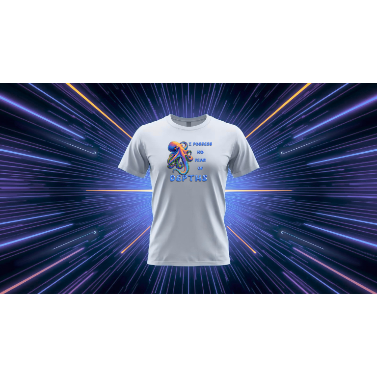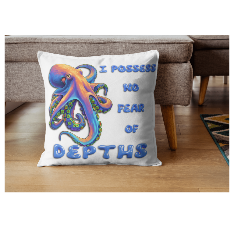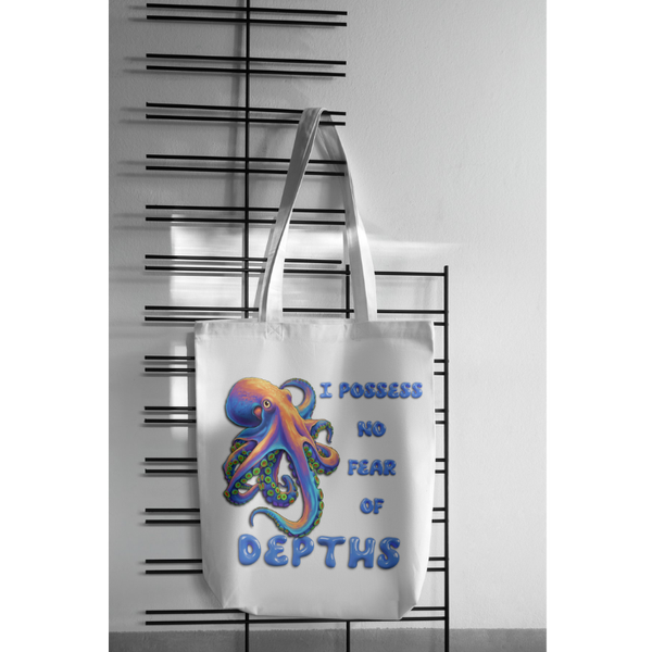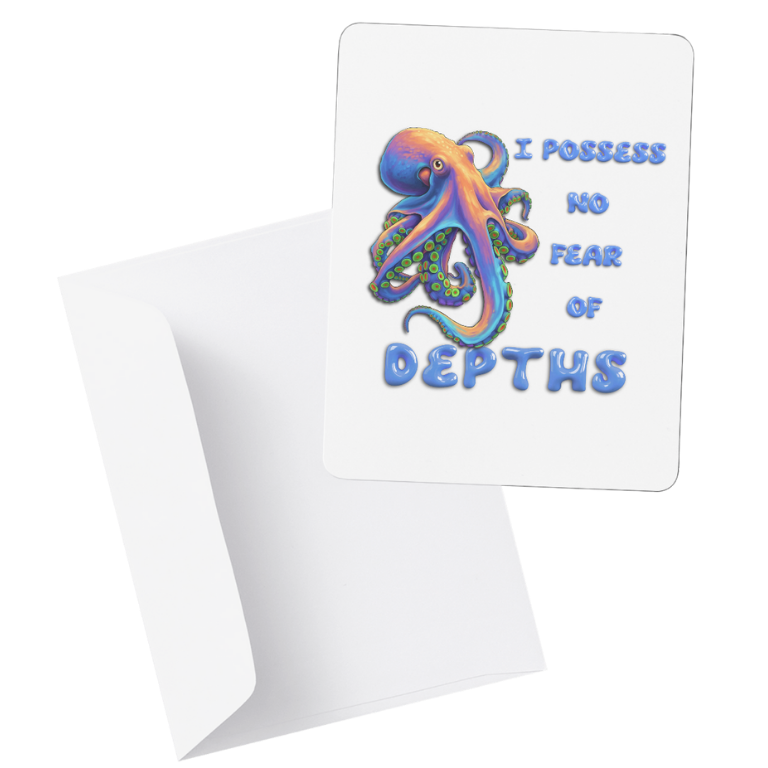 Featuring a vividly colored octopus paired with the bold declaration “I Possess No Fear Of Depths,” this artwork embodies courage, curiosity, and creativity.
