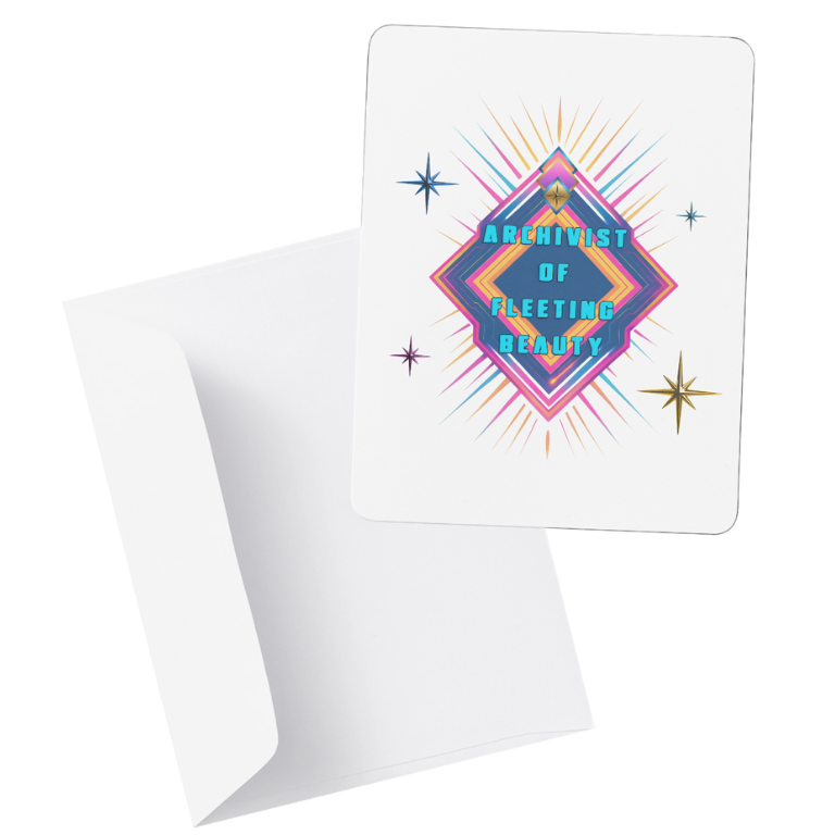 At the heart of the design, the words Archivist of Fleeting Beauty are emblazoned in a striking futuristic font, capturing the essence of honoring and preserving moments of ephemeral wonder.