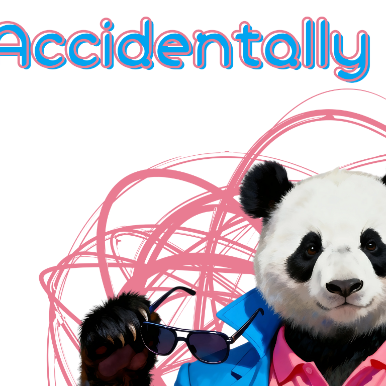 Unleash a burst of playful confidence with “Accidentally Awesome”, a bold and quirky digital artwork featuring a panda dressed in retro-cool style—electric blue blazer, pink polo, and shades at the ready.